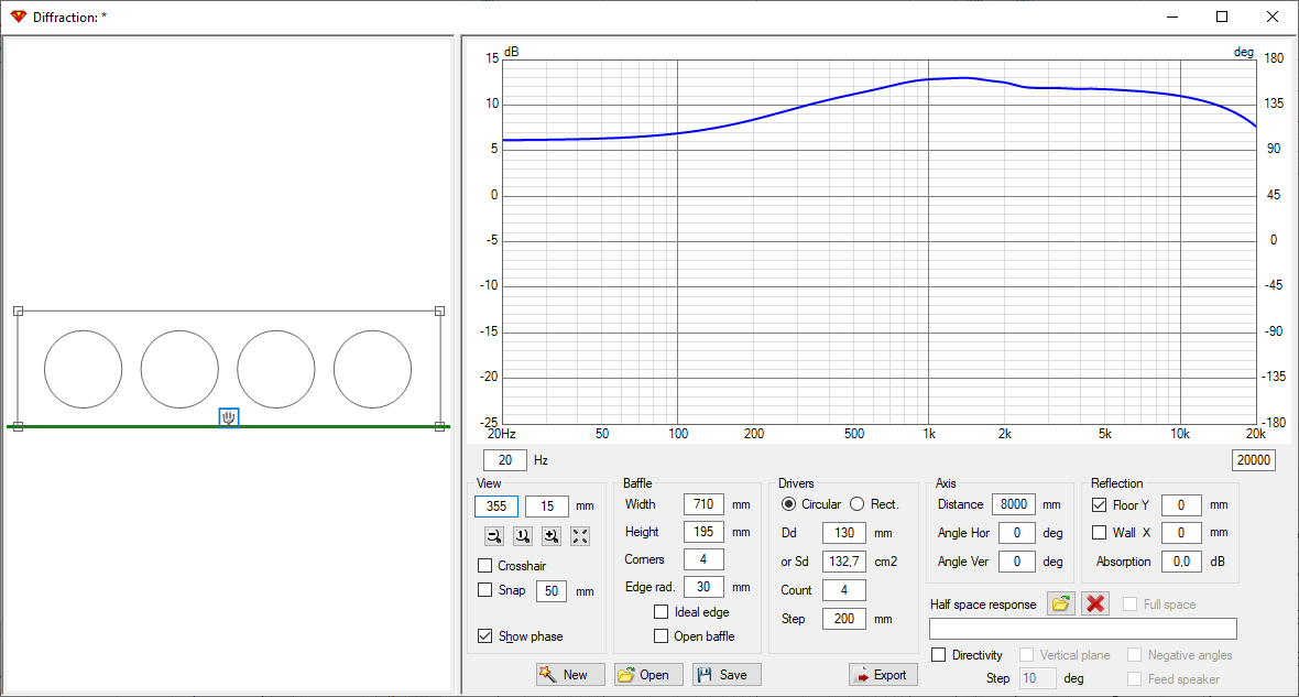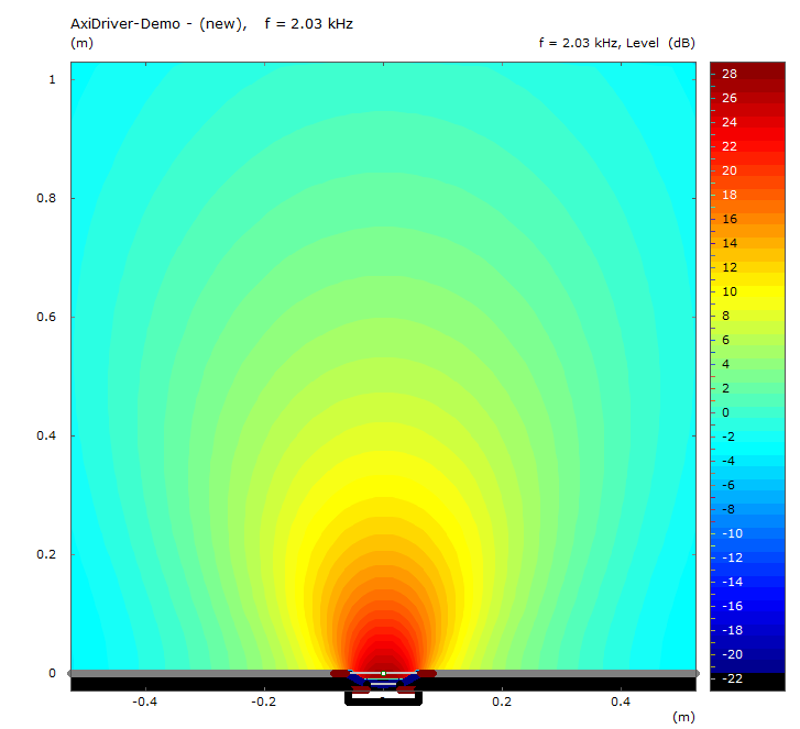 Deckt sich recht gut mit den Messungen bzw. meiner Interpretation dieser - bis ~1000 Hz sind die einzelnen Membranen essentiell Kugelstrahler, und koppeln dementsprechend, wenn direkt angrenzend in der Schallwand montiert, nahezu perfekt. Bei 2000 Hz ist bereits deutlich Bündelung / Keulenbildung zu erkennen, was erklärt warum in den Messungen a) Phasing innerhalb der Länge / Höhe des Arrays b) Auslöschung / Abfall zur Seite zu sehen ist.