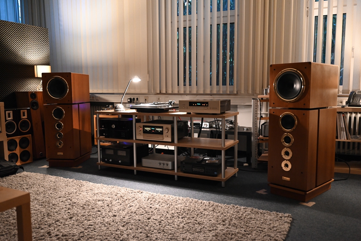 17cm TMT mit einer Kalotte im WG. Kenne ich. Sehr gut sogar. Erinnert mich an meinen ViMo. Sowohl klanglich als auch tonal. Zudem funktioniert die Kombi in der Regel ganz hervorragend im Hörraum der K+T. So auch hier. Auch wenn ich kein Freund von Alu- oder Keramikmembranen bin. Das Teil funktioniert wirklich gut. Da wholefish als Erbauer selbst nicht da sein konnte, ist Michi kurzerhand eingesprungen.