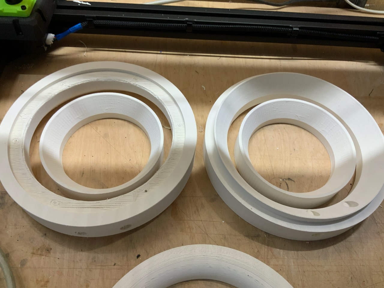 Für den Breitbänder steht das Design. Für den U-Frame ist die Chassis-Befestigung mittels freeCAD fertig und der erste Testdruck mit Stützkonstruktion ist gedruckt. Jedoch ist die Falz für das Chassis sehr uneben, da sich die erste Lage des Filaments auf den Stützen nicht verbunden hat. Hier müssen wird noch mit der Betttemperatur und der Druckkopftemperatur Tests durchführen.