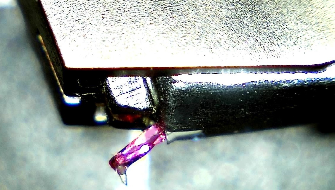 Das Dynavector Karat 23R sieht unter dem Mikroskop so aus: