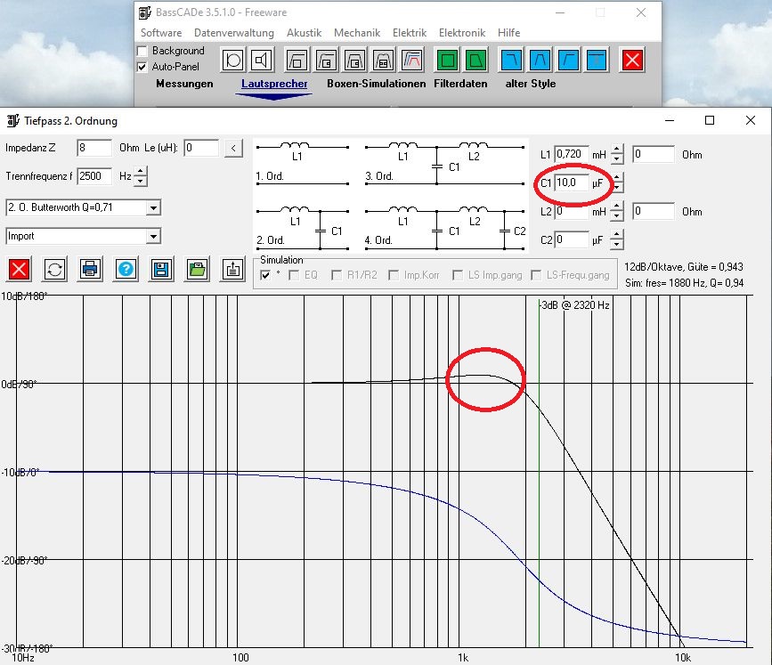 Mit der Filterung bin ich erst mal zufrieden, aber mit der Impedanz bei der Trennfrequenz bin ich mir nicht sicher.
