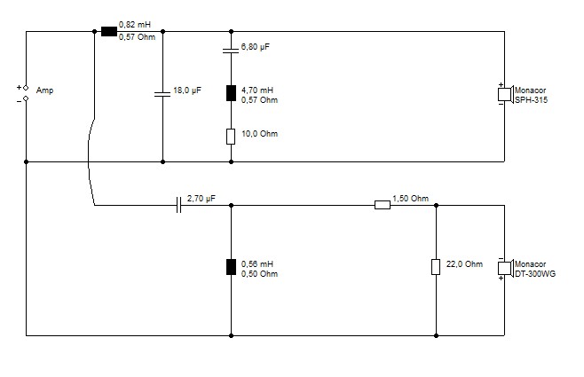 Zu erst L2 mit 0,33 mH angefangen und bin dann später bei 1,2 mH gelandet. Gefüllt 30 mal habe die Weiche auseinandergebaut und gemessen und gehört.