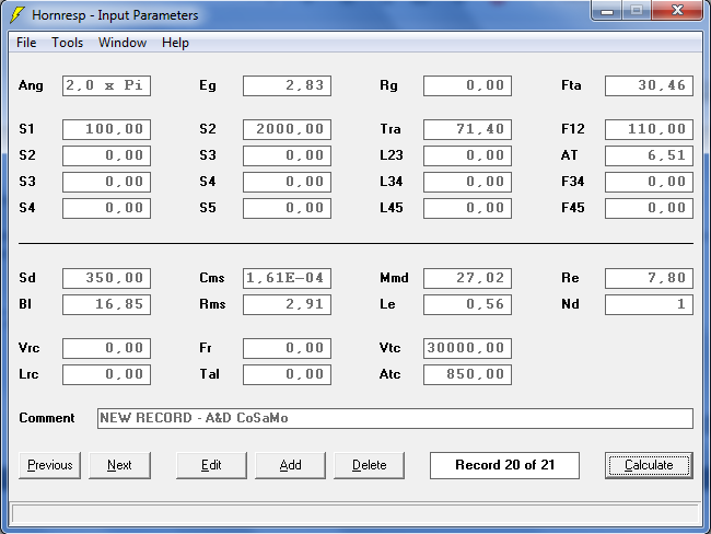Hmm, bis auf Re und Sd waren das jetzt die Daten vom oberen der beiden Messergebnisse. Bzw. das, was HornResp dann ausrechnet.:confused: