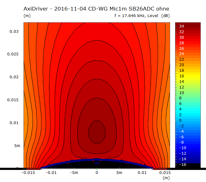 Ok, ok, das hatten wir schon gesehen. Trotzdem, zu sehen ist wieder die Aufweitung und der etwas höhere Schalldruck bei ca 15-17kHz. Dafür geht's darüber mit Schalldruck und Abstrahlung in die Knie. Wo das genau passiert wird an Durchmesser und Abstand des Diffusors liegen...