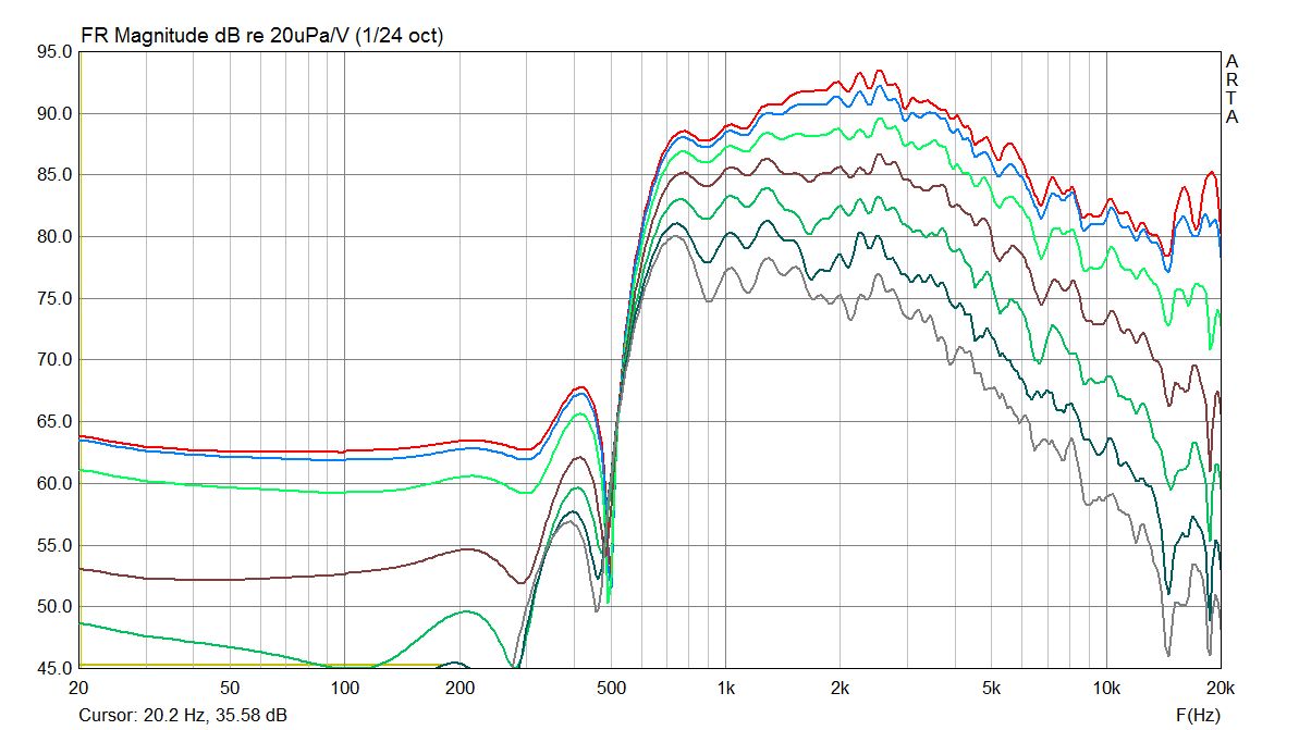 Da der Käufer meiner Peerless DFM2535 Interesse an Messungen in Verbindung mit dem gedruckten 2344 hatte, habe ich die letzten Tage mal ein Horn verklebt und nachdem das neue Mic angekommen war gemessen: