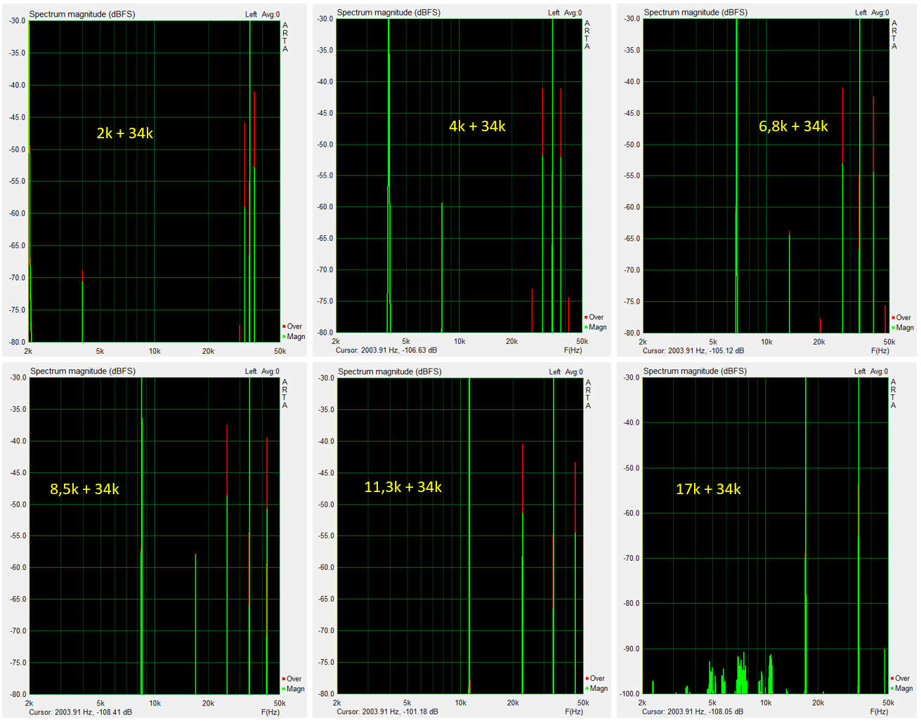 Neben Klirr würde ich versuchen Multiton bis 40kHz zu messen; hast du ne ne gute Idee für andere sinnvolle Zwei- oder Mehrtonanregungen, um zu schauen ob da irgendwas zu hörbaren Frequenzen runtermoduliert wird?