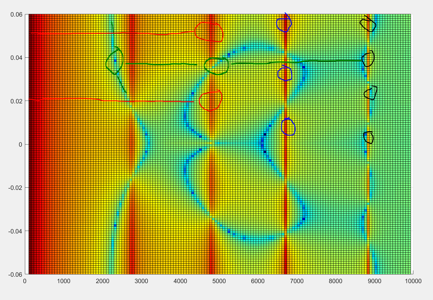 Links ist die Radiale Position in der Druckkammer aufgetragen, unten die Frequenz. Die Kreise stellen nun mögliche Ansatzpunkte für die Eingänge des Plugs dar. Die Farben gehören jeweils zusammen(Grün war nur eine Notiz zur Erklärung für Kessito). Bei 4900 Hz haben wir zwei rote Kreise, also hat der Plug 2 Channel, insgesamt natürlich 4. Für einen weiteren Frequenzbereich müssten wir bis zu 7 oder mehr Gesamtchannel implementieren, dass artet dann schon in Aufwand aus.... Die beiden Channel sehen dann so aus: