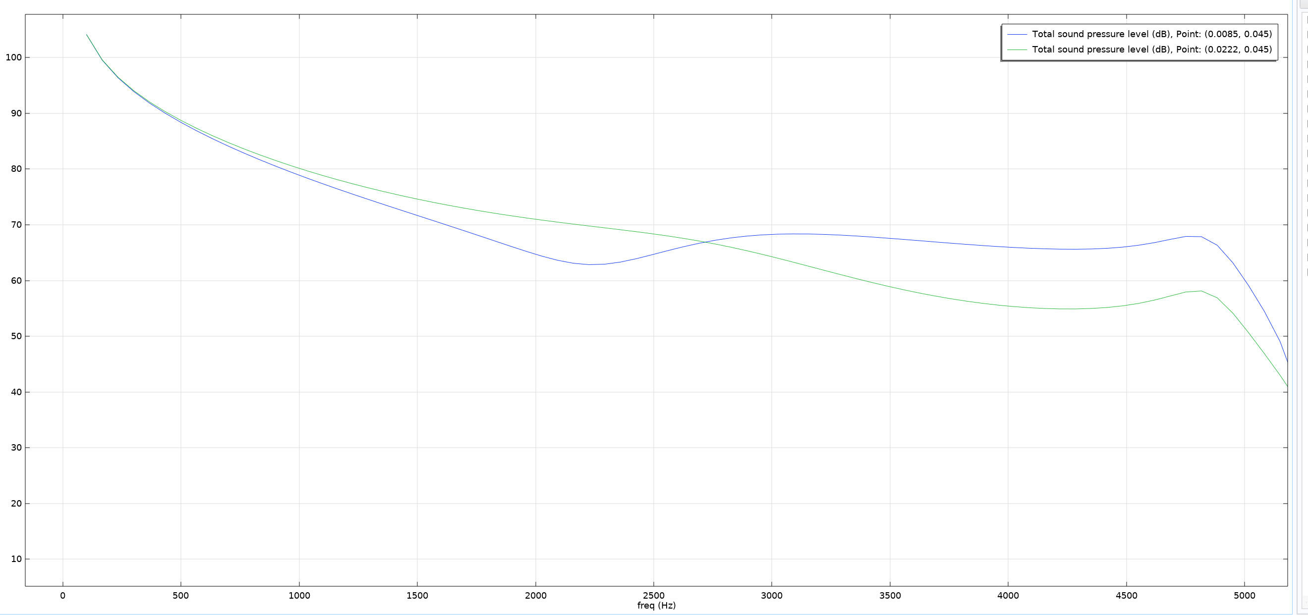 Bedenkt das der äußere Channel einen wesentlich größeren Durchmesser hat und deswegen bei gleicher Fläche schmaler ausfällt. Das ganze testen wir mit den voneinander getrennten Channeln an einer perfekt dämpfenden Abschlussschicht und lassen uns den Schalldruck ausgeben.