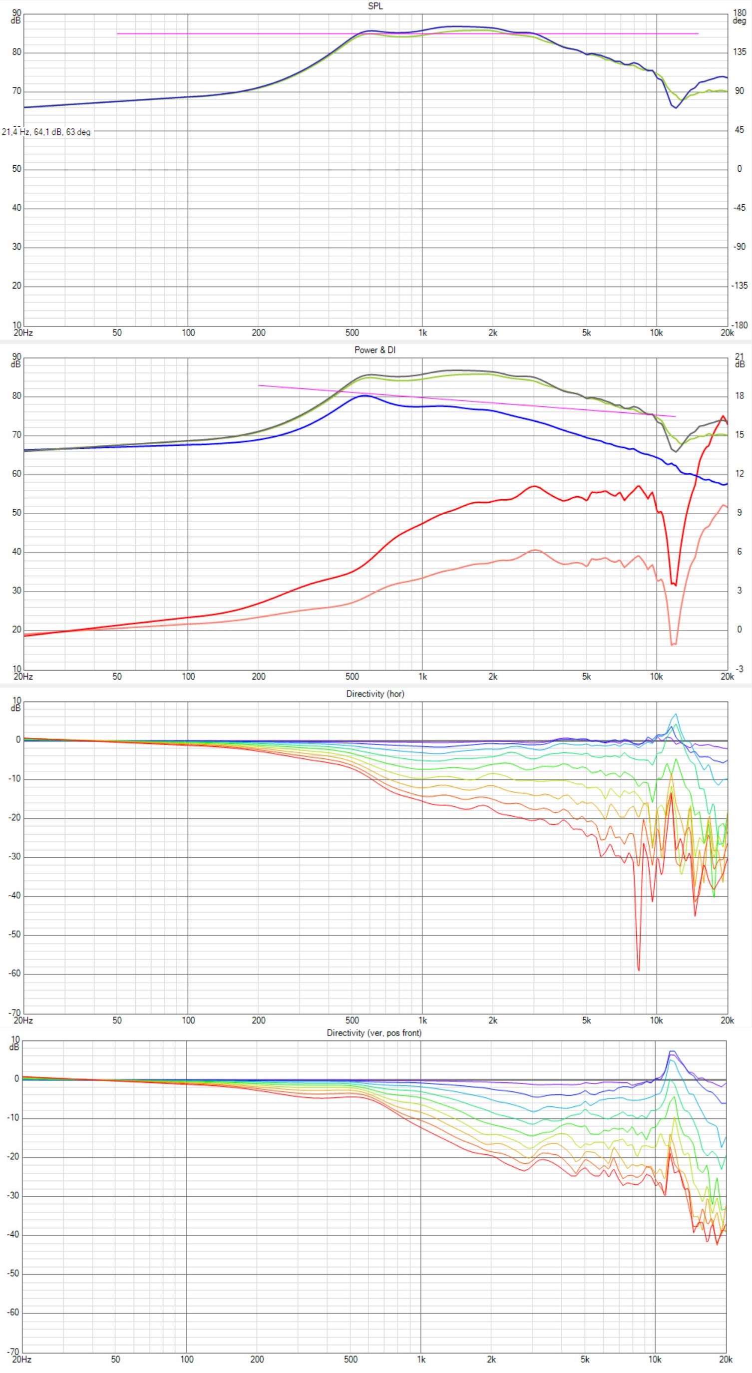 Ich habe mir noch weitere Schallführungen auch von RCF/B&C/ 18Sound angeschaut, aber für mich ist es nicht ganz klar ob da hartes smoothing verwendet wird 1/3, 1/6 und ob die gleichmäßige Abstrahlung/Frequenzgang ohne solche Resonanzen(?) drauf zurückzuführen ist.