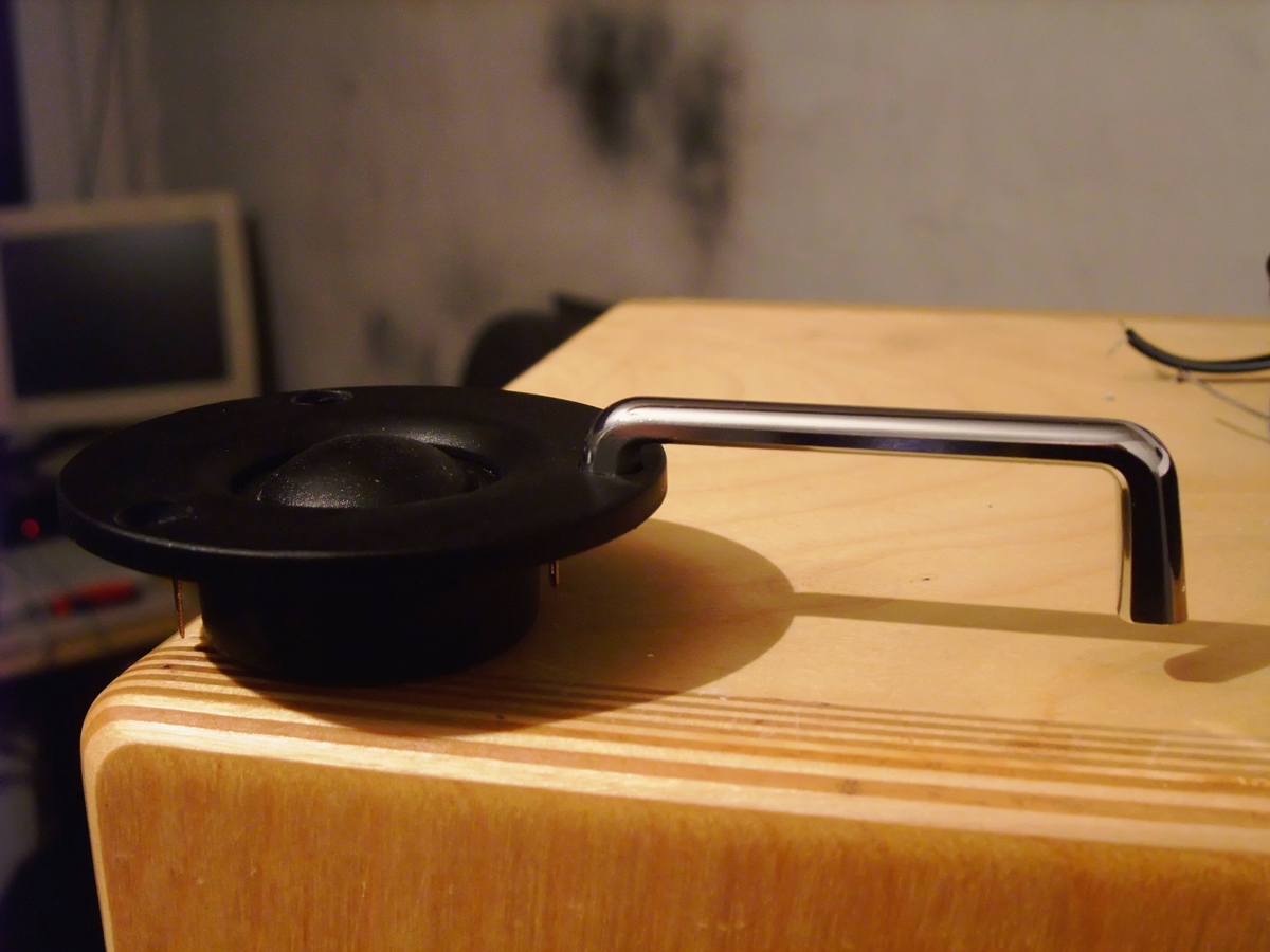 Hier ist ein Foto meiner (provisorisch-vorläufigen?) Hochtonhalterung: