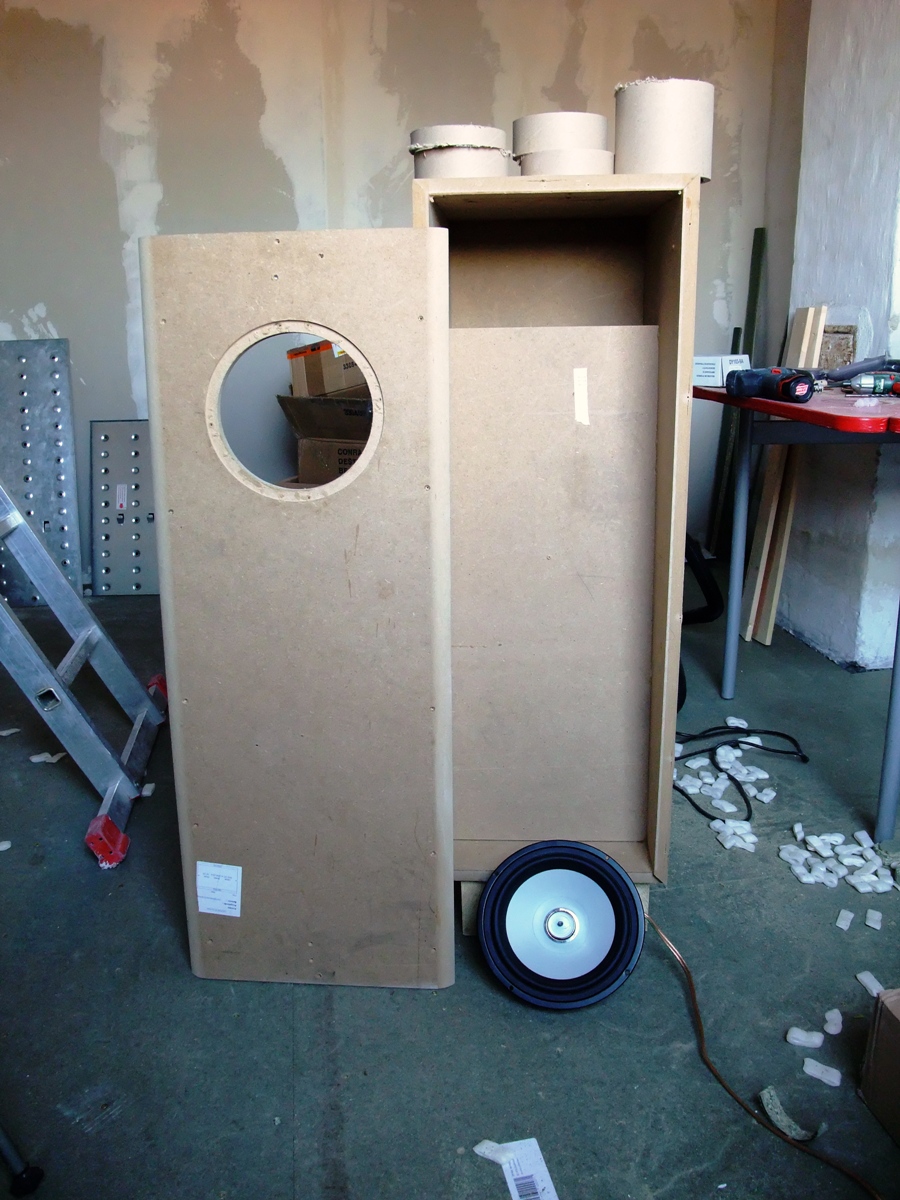 Allerdings würde ich nicht soviel Aufwand oder Ausgaben mit der Befestigung betreiben. M.E. wäre ja sonst, abgesehen vom zu grossen Gehäuse, z.B. auch noch ein zweiter Tieftöner drinnen.
