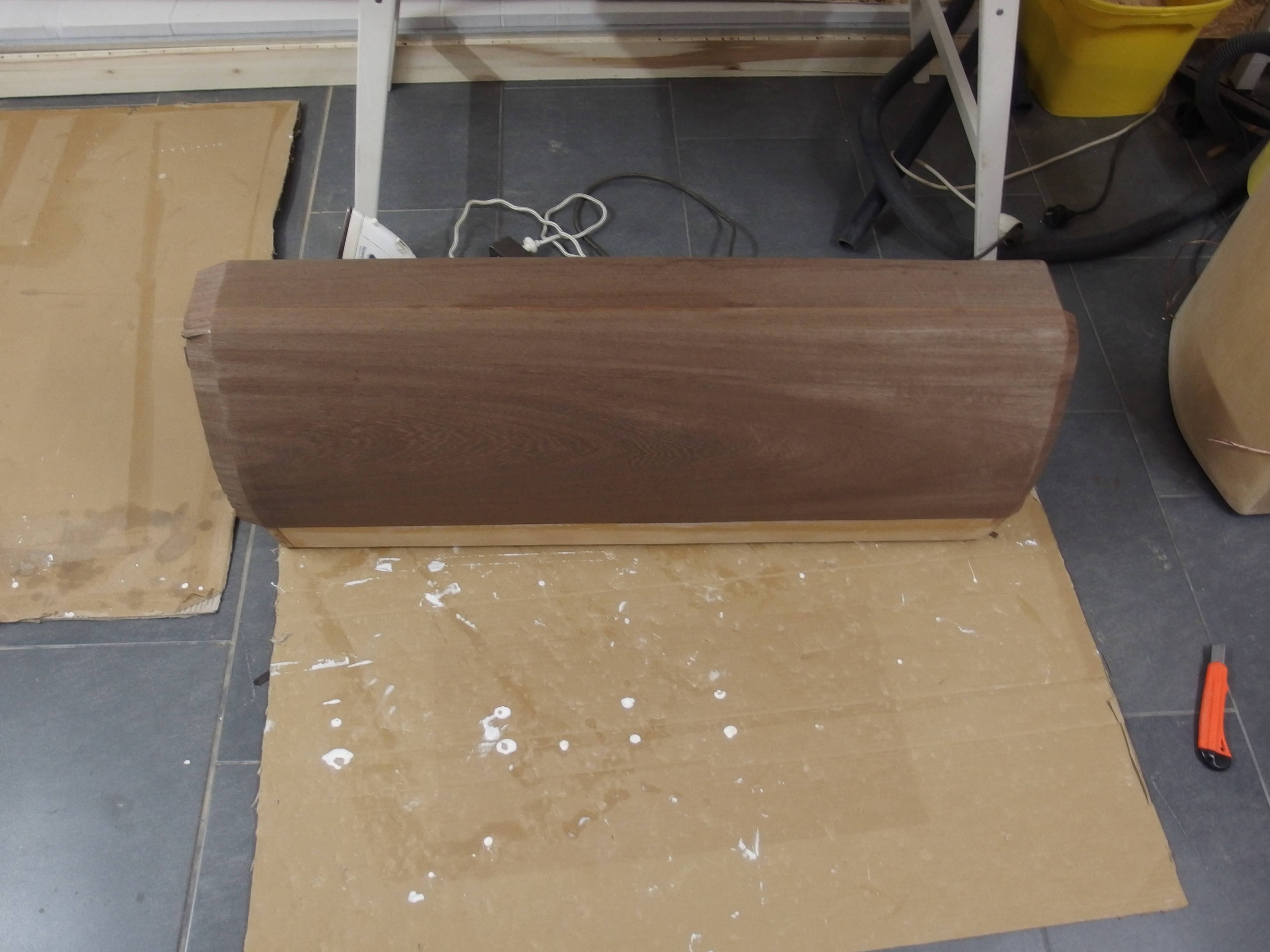 Der erste LS ist schon furniert, grob angeschliffen und gewässert :dance: