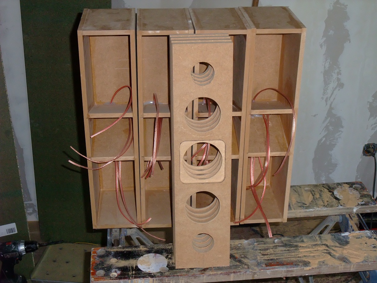 Kurze Wasserstandsmeldung: Die anderen vier Gehäuse und Schallwände sind fertig :dance: