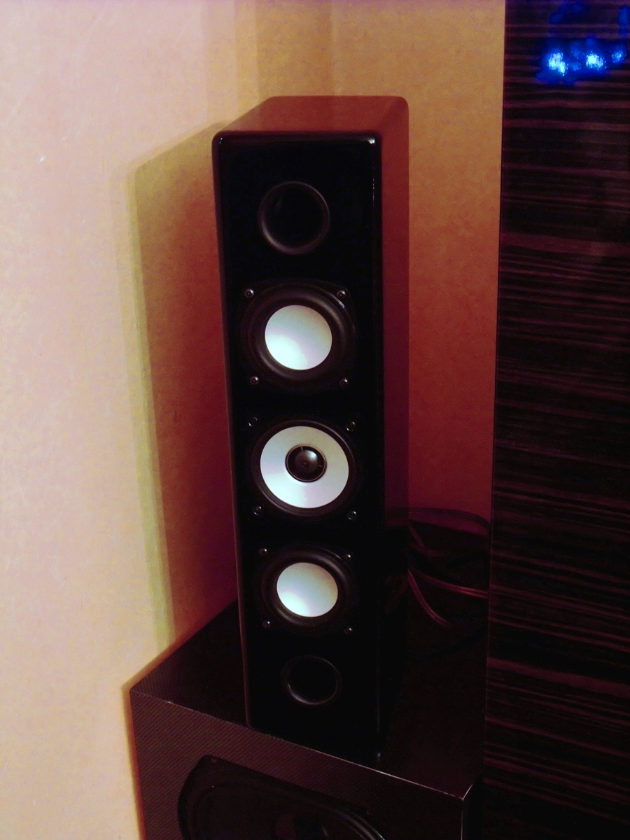 Zudem kann ich den Lautsprecher liegenden und stehend betreiben. Das macht gerade beim Center aus ästhetischen Gründen schon Sinn.