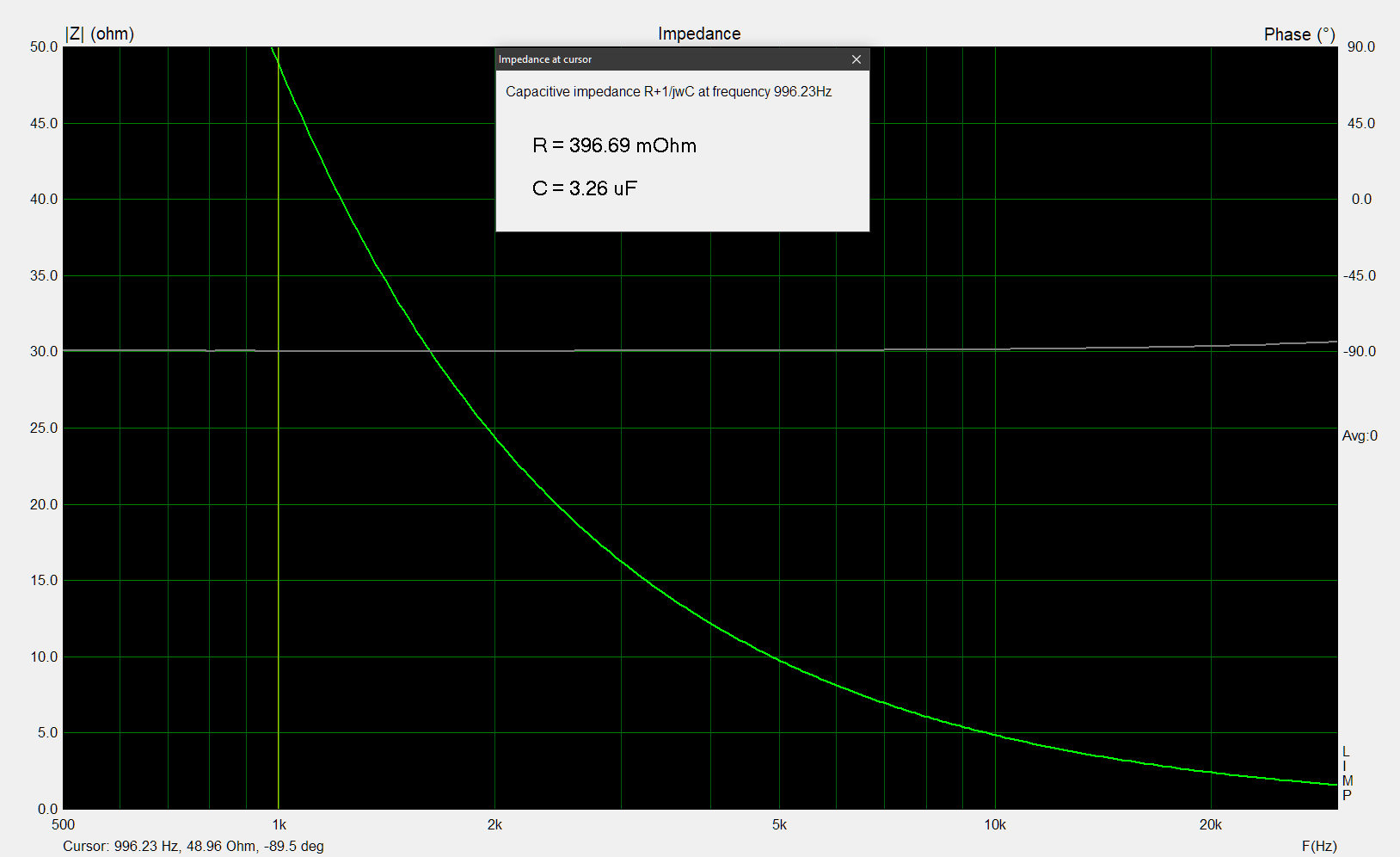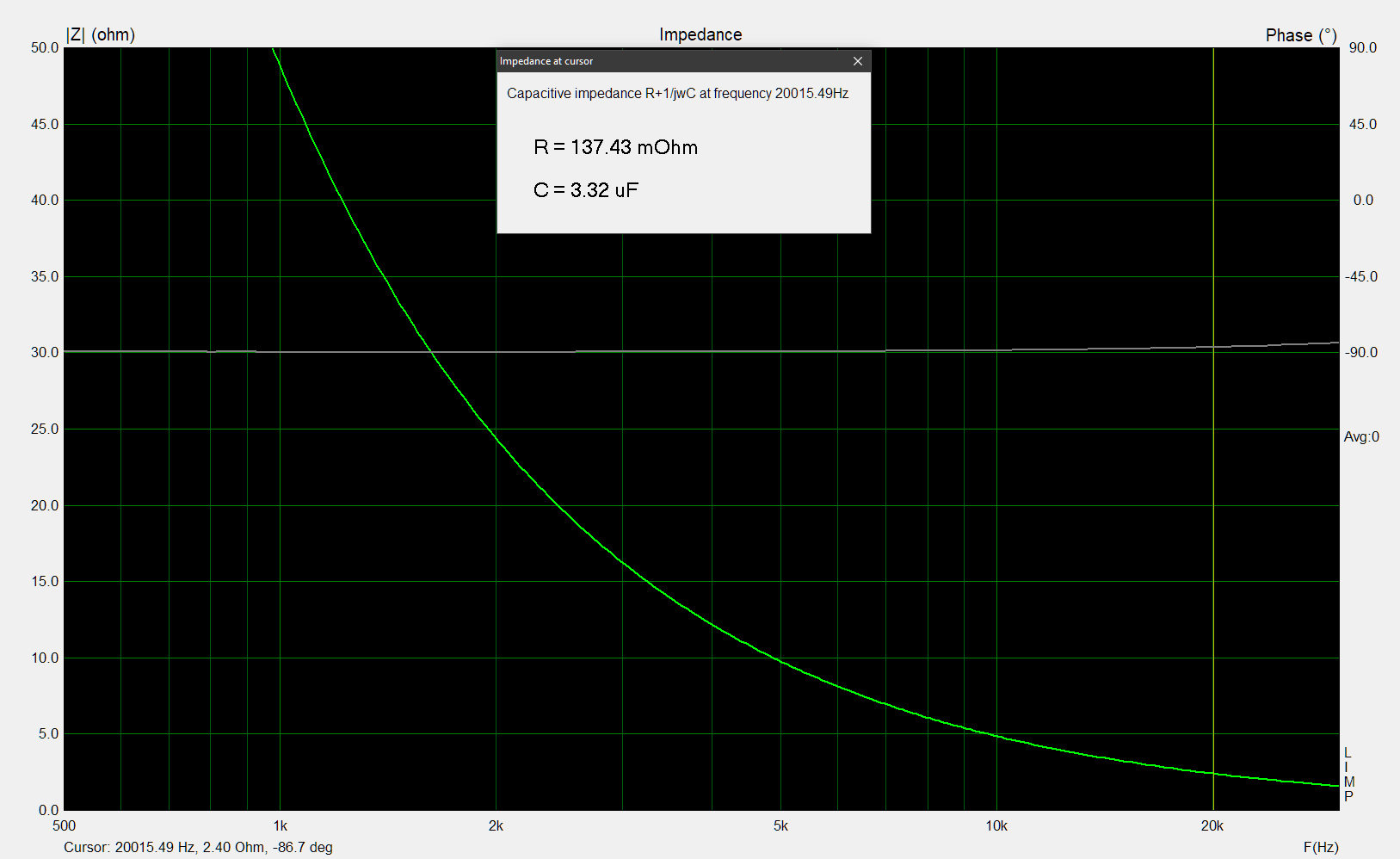 Die in Limp ermittelten Werte zeigen fast identische Kapazität und sehr ähnliche Werte für die "kapazitive Impedanz".