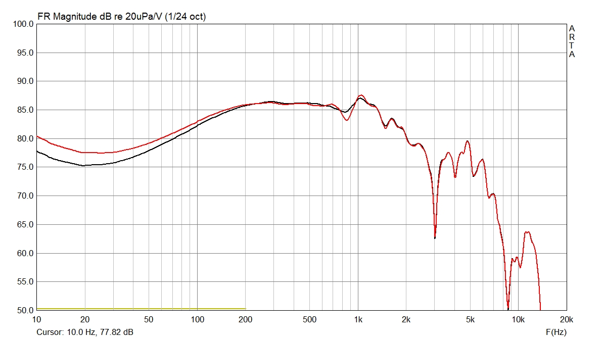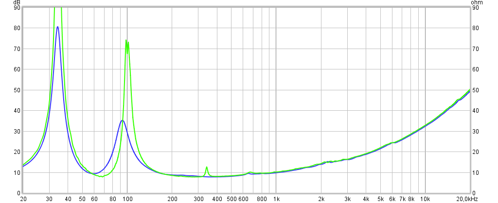 Stimmt: ich hatte ja auch mal ausführlichere Impedanzmessungen gemacht. Ja, beim TMT hatte es da tatsächlich einen Pickel. Und jetzt kommt noch eine Portresonanz fast an der gleichen Stelle dazu.