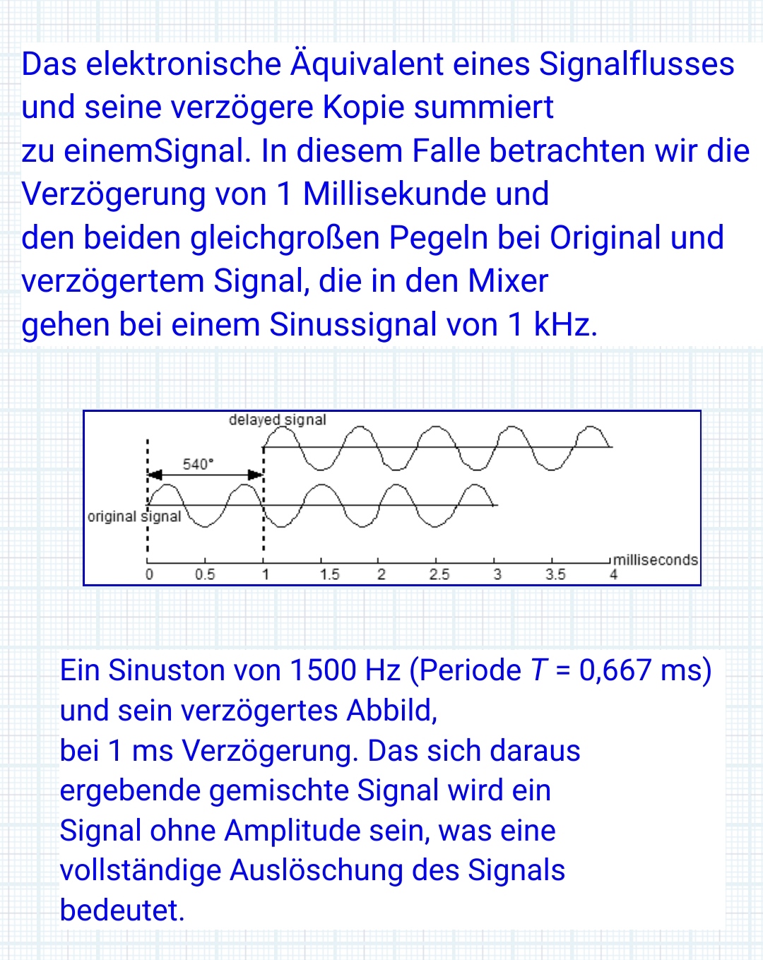 Die "Verzögerung" kommt bei Dir halt durch die unterschiedlichen Entfernungen (und damit "Laufzeiten") der beiden TMTs zum Mikro.