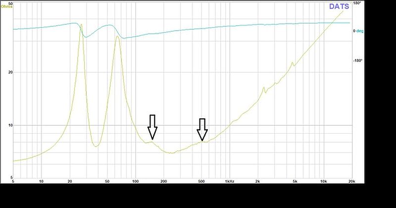 Ich tippe auf Gehäuse Längs Reso um 150Hz (Gehäuse Innenhöhe um 90-100cm?), um 500Hz (schwer einzugrenzen) könnte eine Vielfache sein?