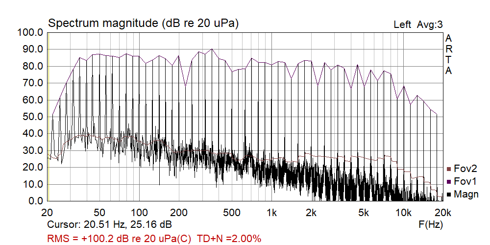 Der %-Wert ist bei ner quick & dirty Messung Indoor, mit nicht ganz stiller Umgebung und optimiertem SNR der Messkette, zu gutem Teil Noise.. würde sauber gemessen wahrscheinlich im Kommastellenbereich liegen. Trotz dessen kloppt das Ergebnis unter diesen Bedingungen bereits einiges High-End HiFi ähnlicher Größenordnung weg :) Ziel soll in jedem Fall schlussendlich sag ich mal, Guesstimate, ähnliche Verzerrungswerte bei ~20 dB höherem Nutzpegel sein.