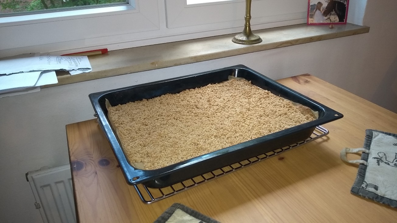 Verpflegung; ich habe Kaffee, Milch, Wasser, Tee in großen Mengen und einen veganen Apfelkuchen (Alles in Bioqualität).