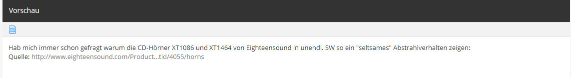 Ich habe keine Ahnung wo der Fehler wieder herkommt. An der Stelle habe ich nichts geändert, aber ich bleibe ´dran. Das funktioniert übrigens definitiv nicht, wenn ihr Javascript blockiert. Sollte das bei euch der Fall sein, könntet ihr *.diy-hifi-forum.eu zu den Ausnahmen hinzufügen. Ohne JS sind nunmal einige Komfortfunktionen kaum umsetzbar. Klar kann ich AJAX abschalten. Aber glaubt mir, das wollt ihr nicht wirklich ;)