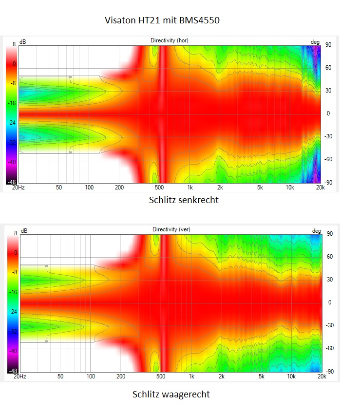 Nacktes Visaton HT21 und BMS4550. Im Zimmer, ca. 1,2m Raumhöhe. 1m Abstand und Fensterung 3,5ms. Konnte da nicht so laut wie sonst messen, waren glaube ich 10 dB weniger.