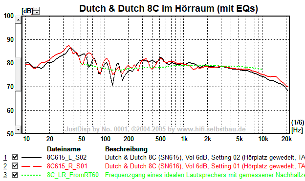 Bei der Dutch & Dutch ist der Abstand der Treiberzentren 21cm. Dafür müsste das Teil bei 800 Hz trennen. 1250 Hz habe ich als Angabe gefunden.