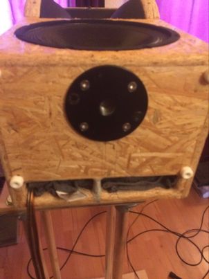 auf einem "Rollwagen" stand - der Rollwagen war mit einer Stange, mit dem Drehpunkt am Boden unter der Box, auf Schallwandebene verbunden