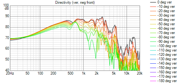 Ich habe mir dann noch zuvor gemachte Messungen des vertikalen Abstrahlverhaltens des TMTs angesehen (die sind von -90 bis +90 Grad), hier auch wieder als Linechart, zunächst zur Oberseite hin....: