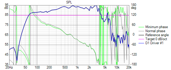 Diese Pickel bei so um 650 Hz stammen dann wohl vom Treiber, sie sind ja auch auf der Freiluft-Impedanzmessung zu erkennen, vielleicht ist es die oft genannte Sickenresonanz, aber da kann ich halt nicht groß was gegen tun.