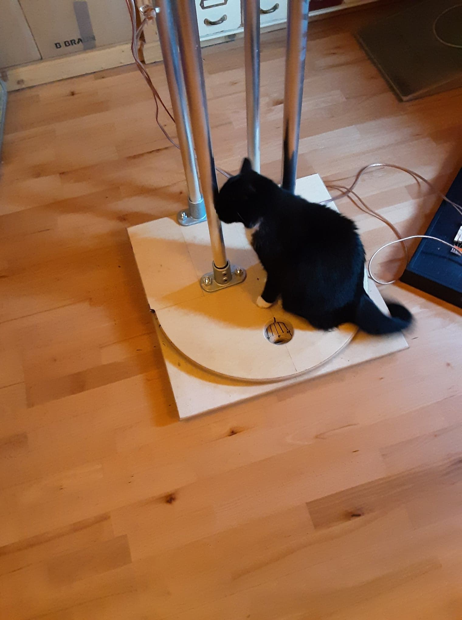 Die Katze mag ja beste Absichten haben, aber fast jedesmal, wenn sie auf den Fuß des Drehtürmchens gelatscht ist, hat sie ihn etwas gedreht. Man kann sie mit dem Leuchtpunkt eines Laser-Entfernungsmesser aber ganz gut weglocken. :D