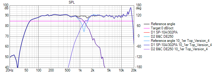 Hei Michael, auch Deine neue Simu sieht imho absolut schnieke aus. Die 24dB im Bass sind dem kleinen Phasenfehler in der oberen Messung geschuldet, richtig?