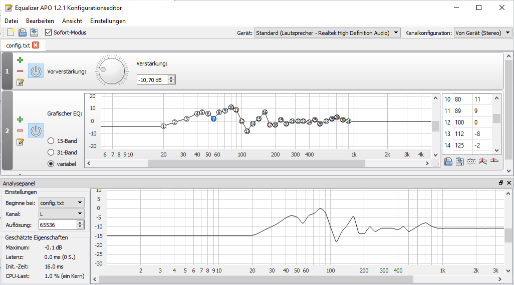 aufgrund meiner positiven Erfahrungen mit der Grundton-, Bass bzw. Raumentzerrung beim Vier-Weger und dem Nahfeldmonitor-Thread von wus habe ich mir auch mal Equalizer Apo runtergeladen und den PC-Lautsprecher anhand dieser Kurve entzerrt:
