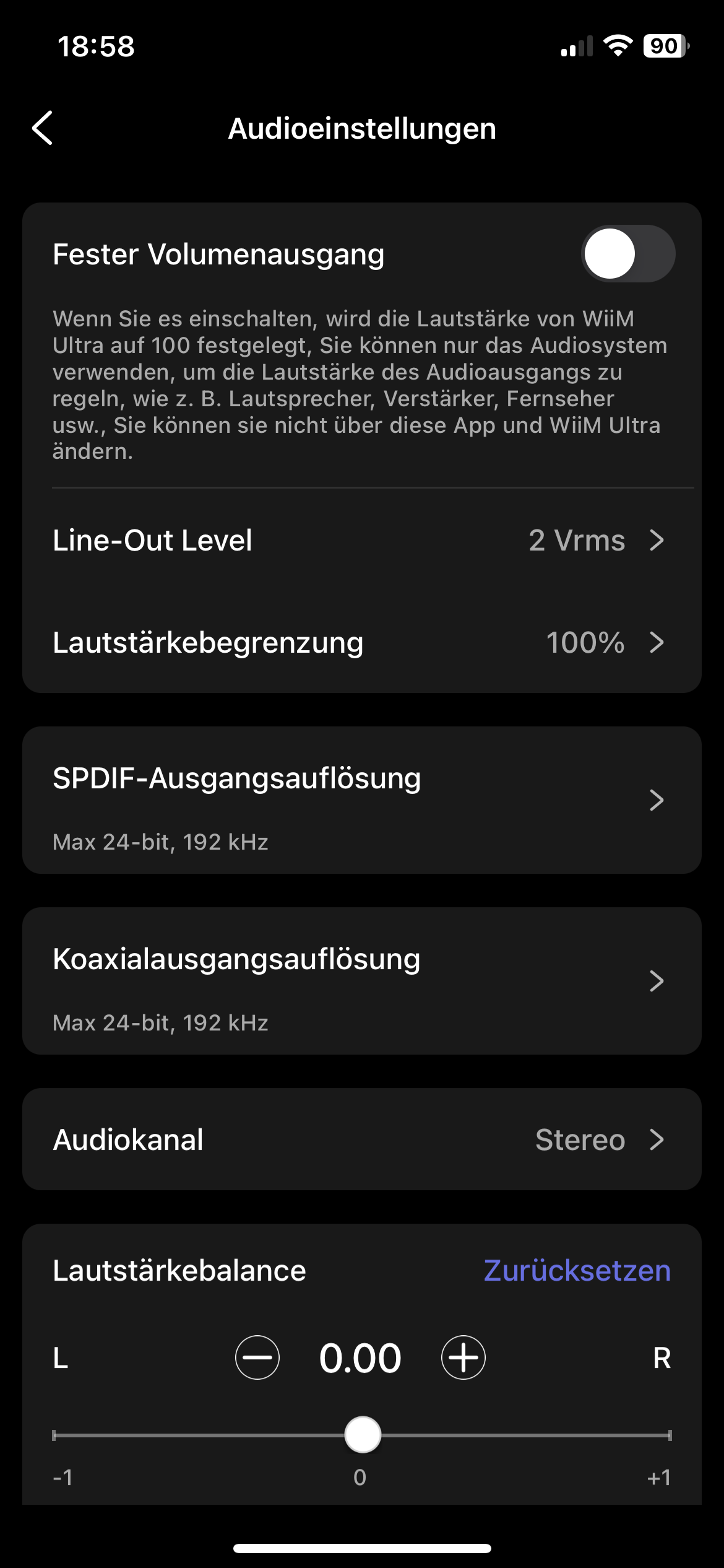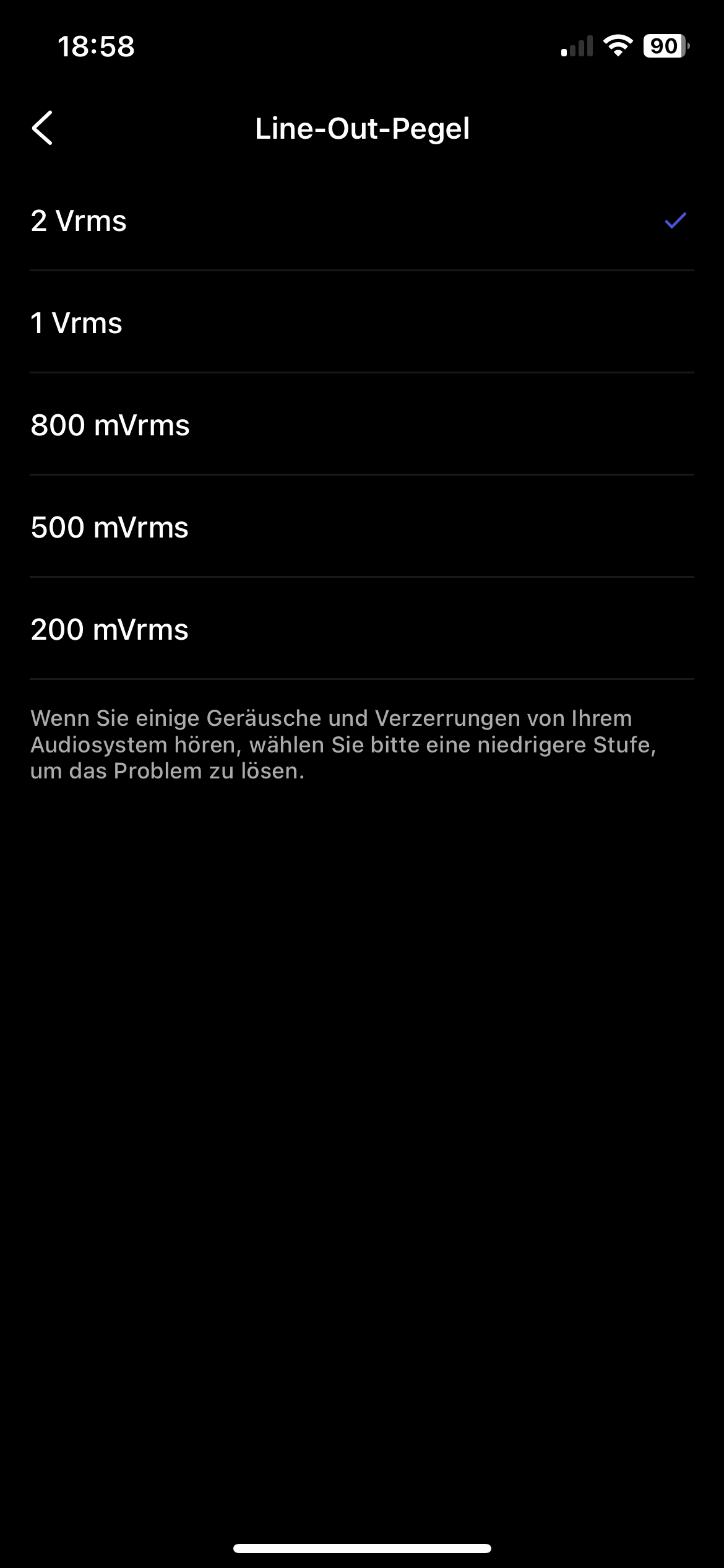 ich wollte noch auf den Pegel eingehen, die heutigen DSP haben fast alle die Möglichkeit den Ausgangspegel zu reduzieren: hier das WIIM Ultra