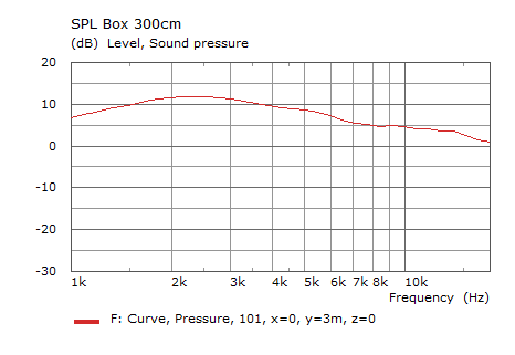 Die Differenz zwischen dem 'direkten' Weg von der Kalotte zum Mikrofon und dem Weg 'Kalotte-äußere Kante Mund-Mikrofon' beträgt demnach ungefähr 2,8cm. Dies enspräche einer Frequenz von ca 12,3 kHz. Der Einbruch sollte dann bei lambda/2, also 6,15 kHz liegen. Das haut mit der Simu leider nicht hin, hier liegt der 'Einbruch' auf Achse bei ca 9 kHz (umgerechnet ein Unterschied von ca 1,9cm). Vielleicht habt ihr einen Tipp, wo ich mit meiner Abschätzung vermutlich falsch liege, oder konkret einen Fehler gemacht habe...?