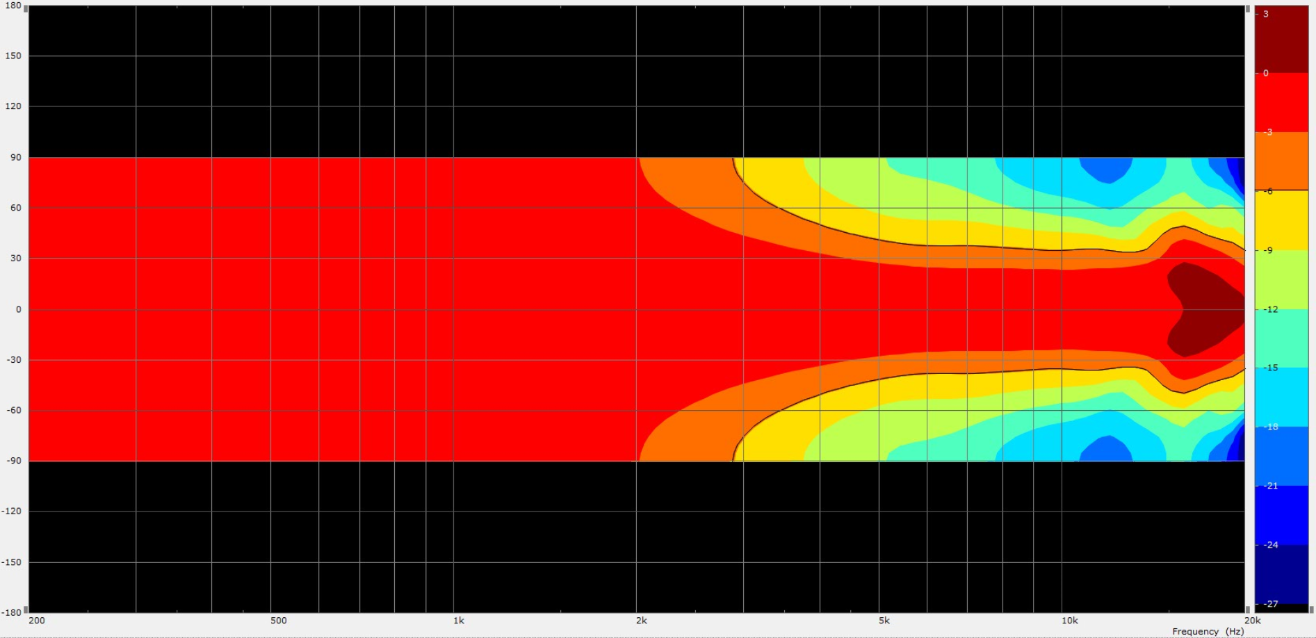 Die Mundfläche berenzt die Kontrolle des Abstrahlverhaltens nach unten, zwischen ca 5 und 12 kHz erzeugt die Kontur ein recht gleichmässiges Abstrahlverhalten, das >12 kHz in das durch die Kalotte (und der Anpassung des WG-Halses) bestimmt wird.