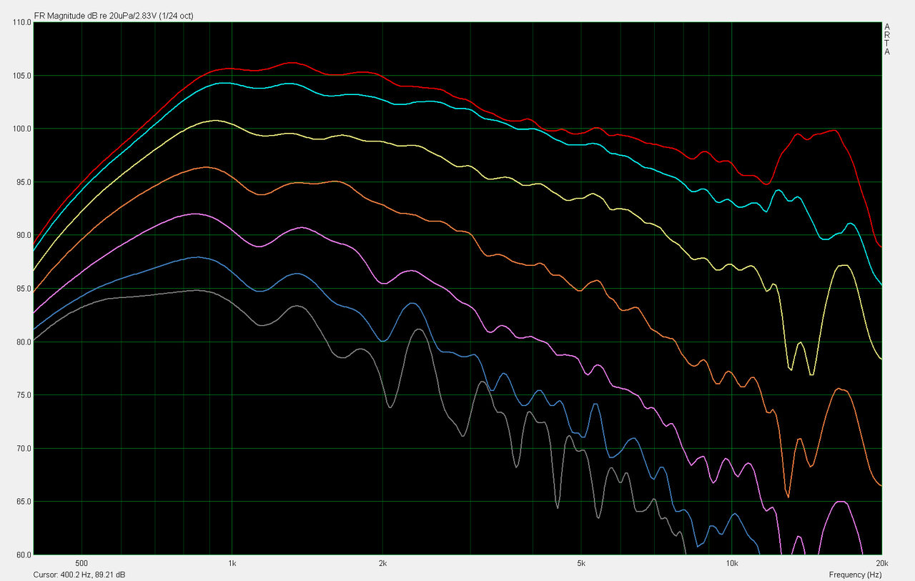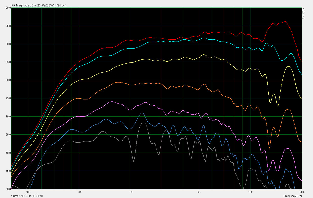 Das alles wird bei der (vermeintlichen, simulierten) DXT-Kontur geschickt genutzt. Die Schallführung ist sehr flach (Tiefe zusammen max. 13mm). Ein wiederholter Blick auf die Wirkung der verschiedenen 'Steps' zeigt, dass ein 'Anflug' von Einbruch auf Achse tatsächlich erst durch Step 4 und 5 erzeugt wird: