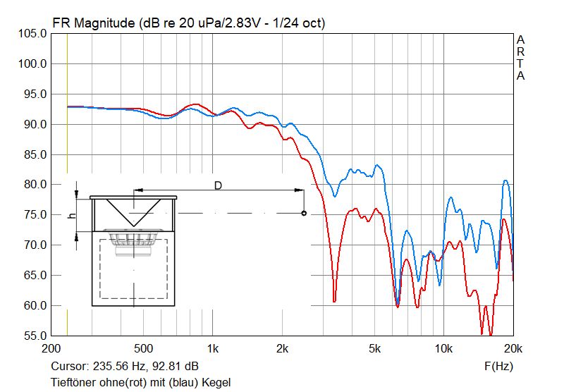 Ich vermute halt, dass die Membrangeometrie eine Rolle bei der Abstrahlung des HT spielt (für den TT sehe ich da keinen großen Einfluß). Und natürlich für die korrekte Simulation der Höhe des Kegels.