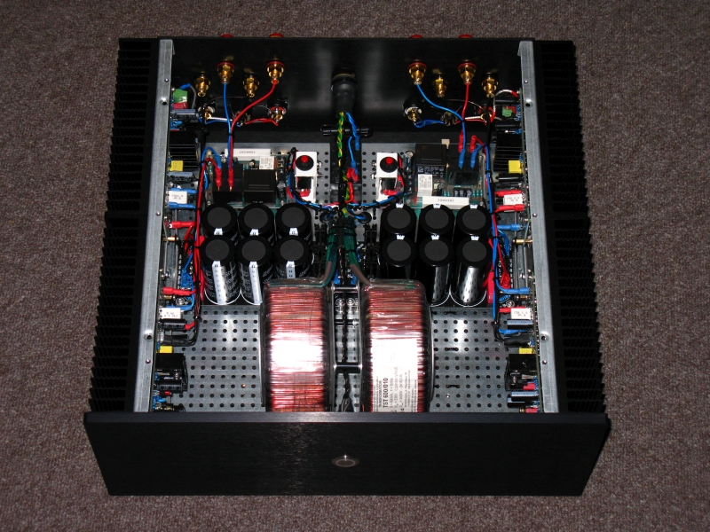Wie viel Strom der Brücken-Amp übrigens zieht- oder besser verheizt, wird auch aus dem Leistungsbezug aus dem Netz ersichtlich. Der Benchmark AHB2 zieht bei sehr-sehr lauten Abhörlautstärken ( das lauteste was ich überhaupt höre ) gerade mal 100 Watt aus dem Netz, der normale L20.5 zieht bei gleicher Lautstärke schon 200 Watt und der L20.5 Brücken-Amp über 400 Watt. Die Riesen-Kühlkörper werden beim L20.5 Brücken -Amp dann übrigens auch schon mal bis zu 52 Grad-Celsius warm. Bei der Riesenflächen der Kühlkörper / Gehäuse ist das schon eine deutliche Wärmestrahlung.