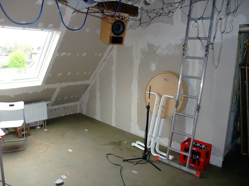 Das funktioniert übrigens erstaunlich gut. Die BW klingt trotz nackter Wände fast besser als in meinem Wohnzimmer :rolleyes: (na ja, der Giebel mit seinen antiparallelen Wänden und die Gipskartonplatten (Plattenabsorber) werden auch einen positiven Einfluß haben).