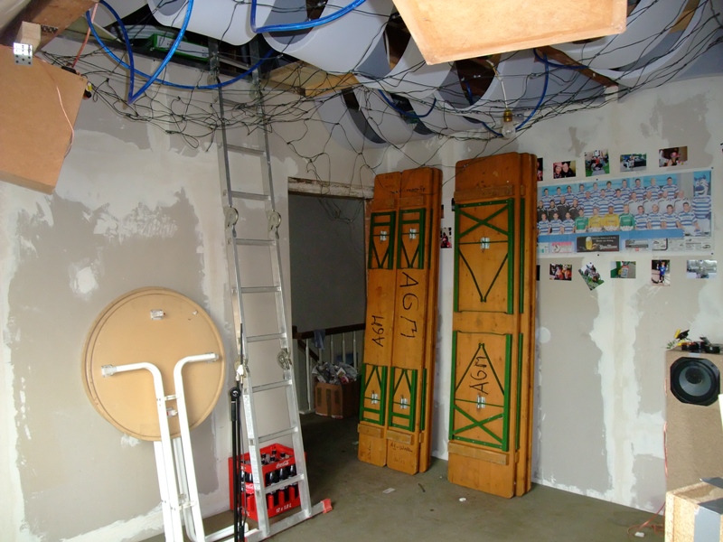 Am Wochenende war das ein Partyraum (deswegen Basotect, Lautsprecher und Lichtschlange), demnächst soll es ein Schlafzimmer werden...
