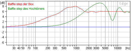 Auch unser Hochtöner hat eine eigene Schallwand. Diese ist allerdings kleiner, so dass der Baffle Step im unteren Hochton liegt. Ergo gibt es dort eine Schalldruckverstärkung (deswegen kommen wir auch mit so einen kleinen Kondensator aus (vgl. die Messungen des Mark Audio in der breiten Schallwand)) und eine Einschnürung der Abstrahlung.