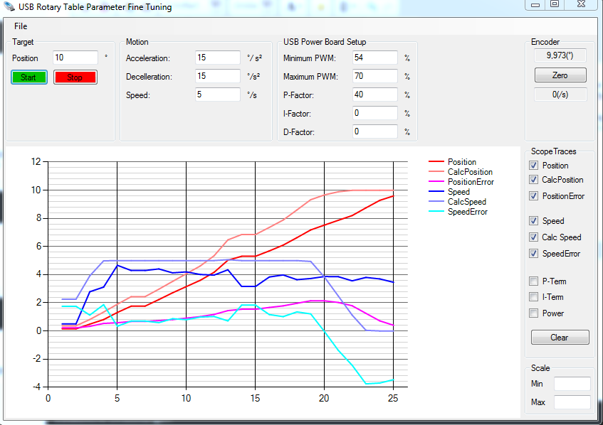 Ja, ich habe ähnliche Probleme mit diesem Motor. Ich habe Schwierigkeiten, die richtigen Werte einzustellen. Entweder er fährt ruckelig oder er läuft weicher (Beschleunigung/Bremsen), hält dafür aber manchmal nicht an, sondern schwingt unendlich lange um den Zielpunkt. Mir ist auch aufgefallen, dass er sich erst ab einem PWM-Wert von 55 überhaupt dreht, darunter gar nicht.