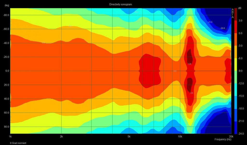 Auch hier ist der erhöhte Schalldruck und die Richtung der Abstrahlung zwischen 1kHz und 2kHz zu erkennen.