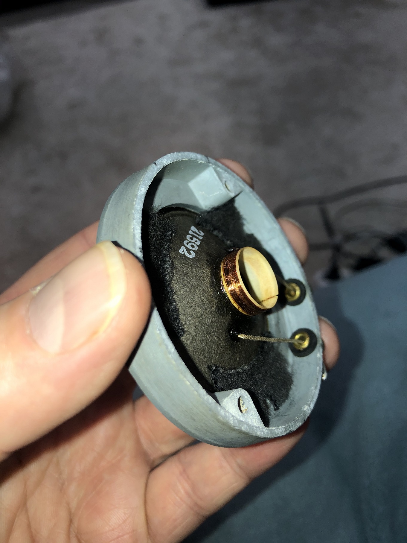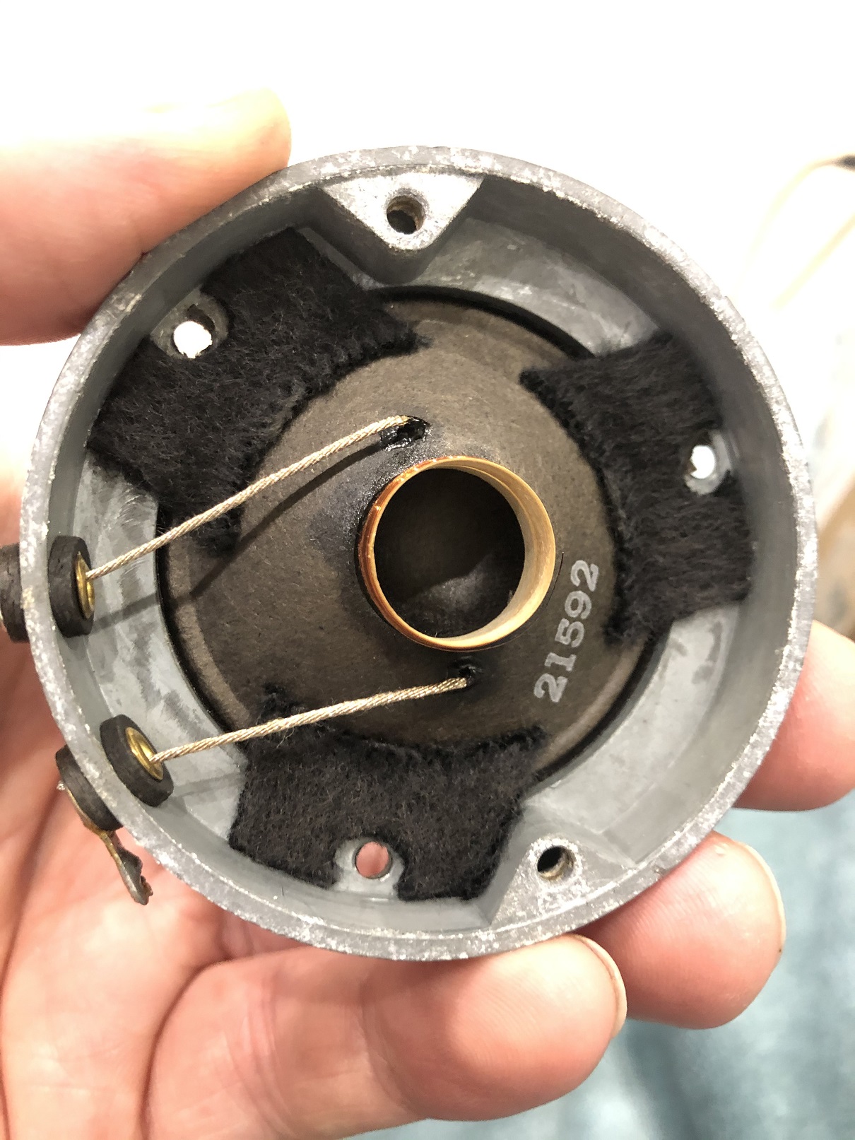 Puh, die hat gelitten. Ich hoffe, dass Du jemanden findest, der Dir die Spule neu wickeln kann. Ich würde dann beide Hochtöner machen lassen, damit sie hinterher wieder gleich sind. Alternativ kannst Du versuchen, ob Du passende Reconekits C8RLE20 findest.