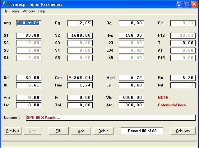 weiter oben wurde ja schon ein Gehäuse mit dem SPH-60 X simuliert, mit dem Ergebnis, daß ein Backloaded Horn üblicher Abmessungen die elektrische Belastbarkeit und auch den Pegel auf unter 1 Watt beschränkt.