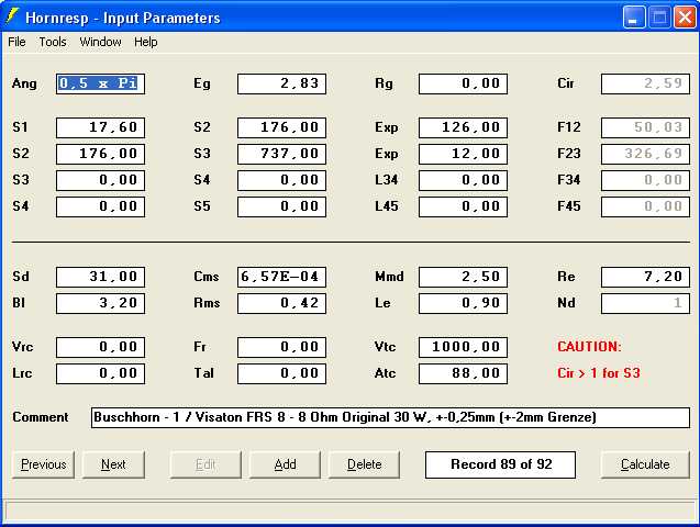 Noch eine Erläuterung zu den hornresp Simulationen: