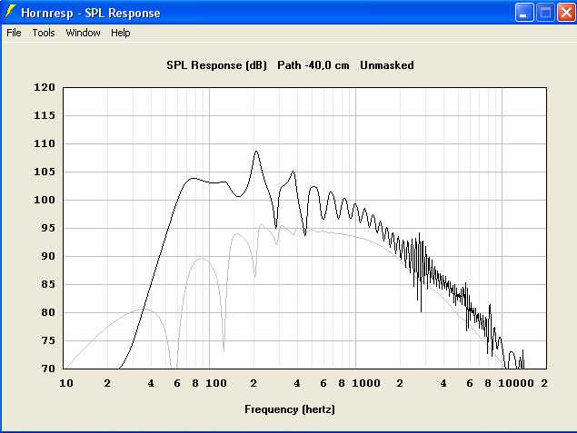 Um das Verhalten des Horns oder "Horns" zu betrachten, scheint mir die Variante hornresponse aussagekräftiger, weil da Strahlungsimpedanz des Horns und des Treibers getrennt betrachtet werden und vor allen Dingen die Überlagerungen Treiber/Hornmund getrennt betrachtet werden.