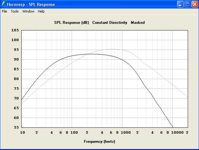 Das Ergebnis finde ich erstaunlich: Die so unterschiedlich kräftigen Treiber liefern in gleichgroßen, individuell angepassten echten Hörnern nahezu ein identisches Ergebnis ab (schwarz = Visaton, grau = Lowther), obwohl die Freifeldfrequenzgänge der Treiber so unterschiedlich sind: