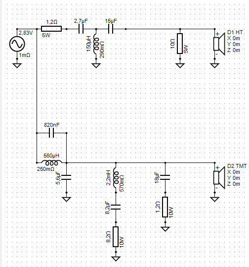 Auf Basis der Messungen und der ersten Weichenversion von Rouven habe ich daraus mal eine angepasste (und leicht vereinfachte) Weiche gestrickt. Ich glaube das würde ich dann mal real umsetzen und schauen ob das taugt.